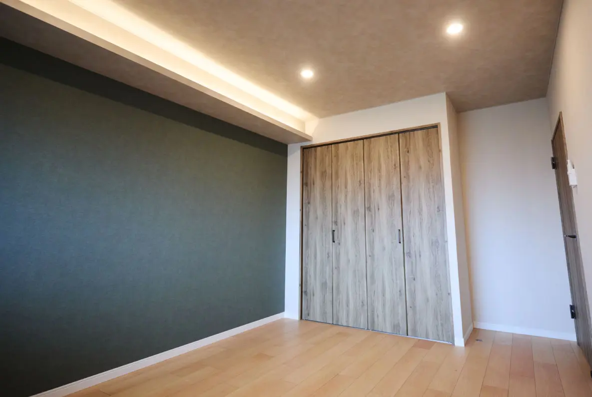 壁紙は全室別色にし個性を演出。また全室に間接照明を設置し穏やかでリラックスできる空間に仕上げました。