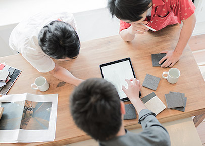 専属コーディネイターと打ち合わせ生活スタイルに合わせた仕様、デザイン設計を行います。数回のご提案を経て、プランを決定して行きます。