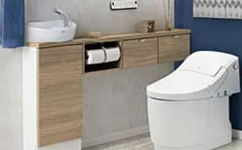 ウォシュレット一体型トイレシンプルなデザインが生む心地よさ。セフィオンテクトとプレミストの相乗効果で汚れがつきにくく、落ちやすい。凹凸も少なくお掃除が楽にできる機能が充実。