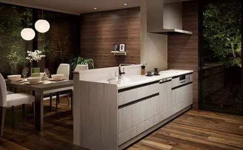 人造大理石ワークトップ汚れに強く、耐久性のある人造大理石ワークトップを採用。