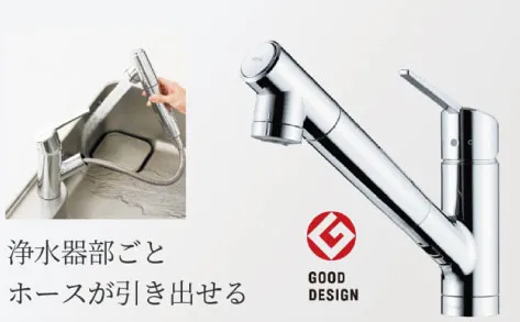 蛇口一体型浄水器 クローレ蛇口にビルドインされた浄水器ですっきりした見た目の浄水器です。